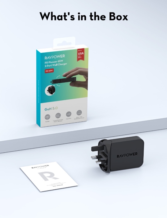 Ravpower Rp-Pc1079 Pd Pioneer 65W 2-Port Wall Charger Black