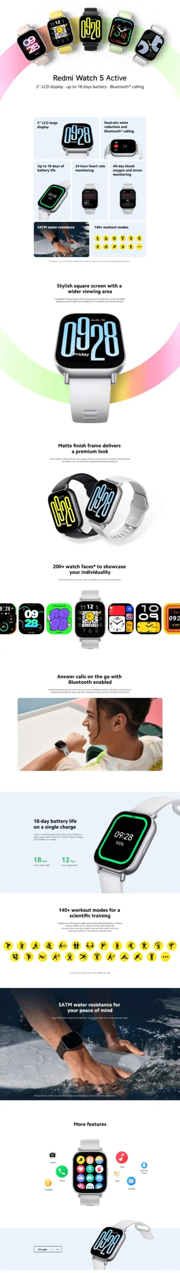 ساعة Xiaomi Redmi Watch 5 Active - ساعة ذكية - أسود منتصف الليل