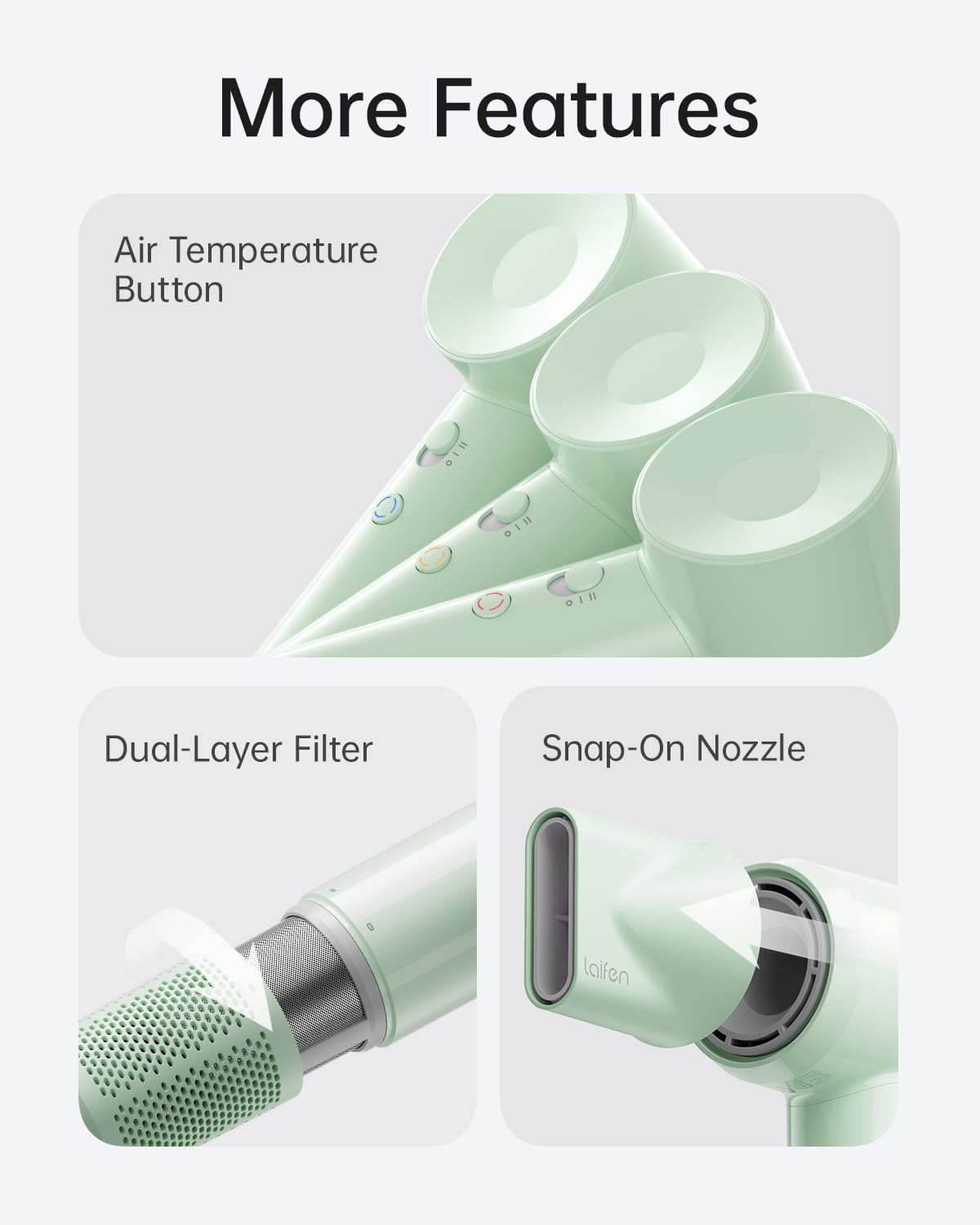 Laifen SE Lite Hair dryer; 1400W; 19m/s; 100,000 RPM _ Green